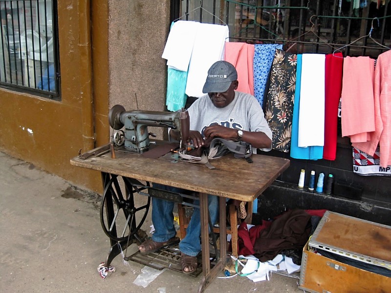 I wanted a side pouch added to my bag, so we hired Weston, one of the menders along Haile Selassie Road, to do the job. Weston also fixed a seam on Caroline’s skirt and repaired some jeans I tore getting out of a minibus.