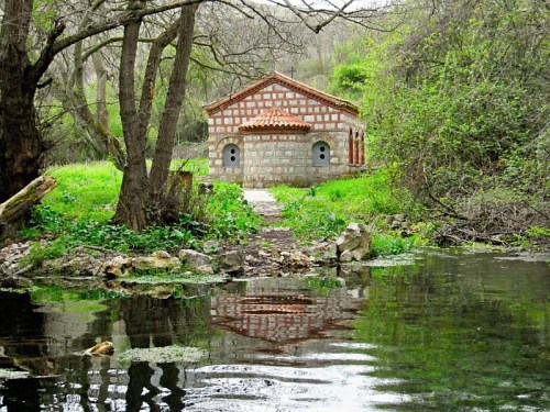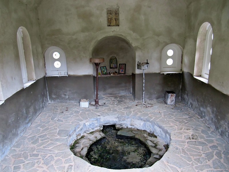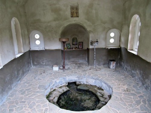 The church has its own natural baptismal pool with water flowing in the shape of a cross.