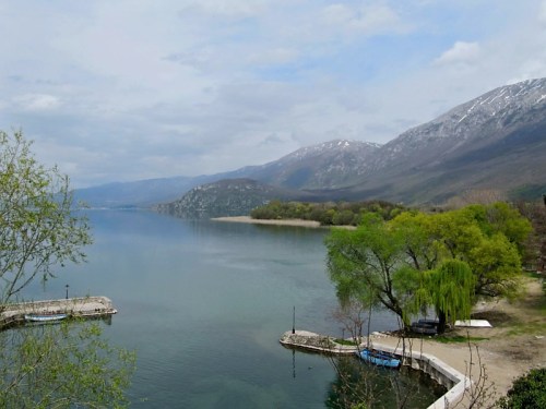 Travel Info – If you’re trying to cross the border into Albania on foot from Sveti Naum, you’ve got two options: either cross the military base to the adjacent border post, or go around on the road. The military base guards were not in a good mood the day we crossed, so we had to go on the road. Our boat conductor gave us a ride for free. Using the road, it’s 3.5km walking to the border post (although there may be shortcuts), and another .75km to the Albanian post, from which point taxis on to Podgarec are available (negotiate–we were offered 10 Euros but ended up paying 5 after we stormed off towards Podgarec on foot). If you know in advance the military base route is not available and don’t want to take a taxi, ask for your boat conductor to take you to the little church mentioned in this post, then hike from there to the border post. The post is only 1km form the little church, and the road is just uphill from the church.