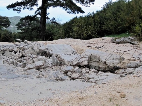 The mess left after attempted destruction of a bunker shows just how strong the concrete and iron structures are.
