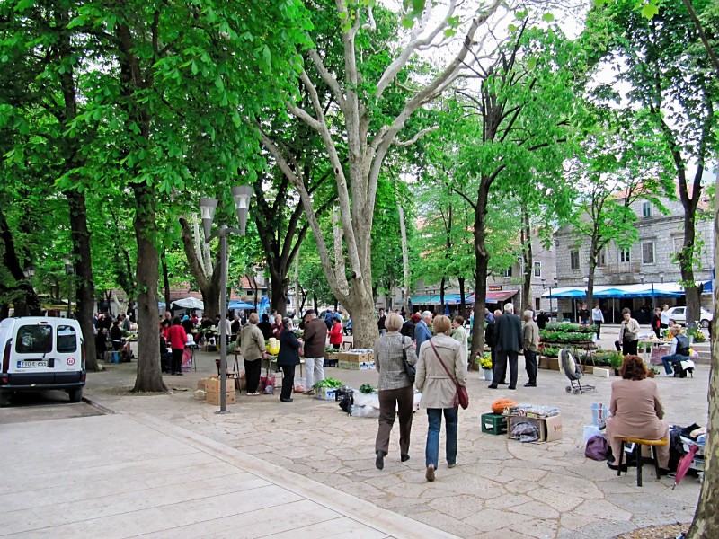 Trebinje’s market, where locals go to pick up herbs, fruits, and vegetables, in stark contrast to the market in Dubrovnik!