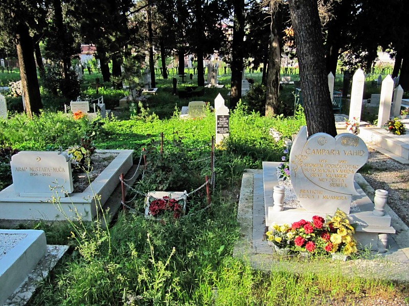 Before the war, Mostar had a decent population of Serbs, Croats, and Muslims (Bosniaks). The Serbs were quickly defeated and left the area, and, for a period of years, the city’s Bosniak and Croat forces fought. In graveyards such as this Muslim one, the dates of death are all disturbingly close together.