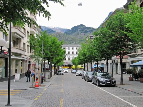 Next stop: Domodossola! Are we in Italy or in Switzerland? Although technically Italian, the Swiss flag appears just often enough to confuse travelers.