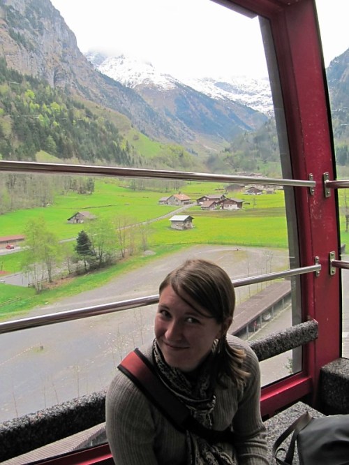 We stocked up on groceries at the Coop and boarded a train to Lauterbrunnen, a bus to Stechelberg, and finally–a cable car to Gimmelwald, the snowglobe-like farming village that is worth any number of train rides.