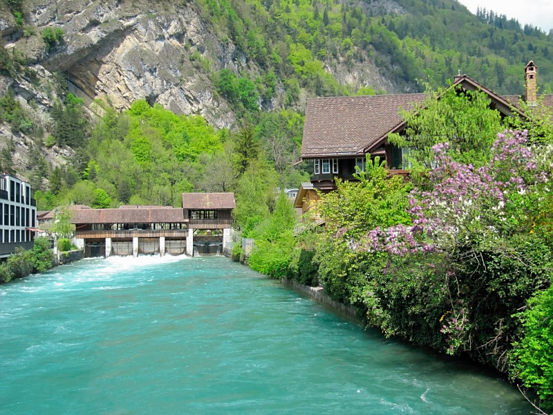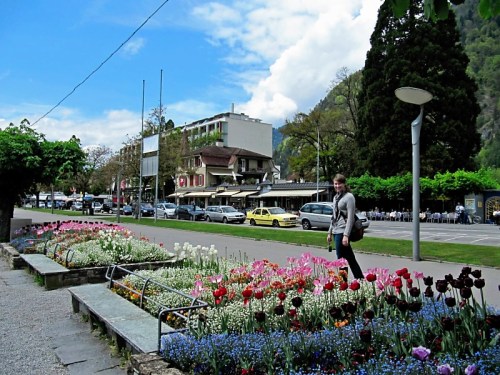 We gave up on our goal of seeing the Aletsch Glacier–or anything close to it–and caught the train to lush, pretty Interlaken. The mountain-fringed city attracts scores of adventure sports enthusiasts wanting to paraglide into its expansive flower-filled fields.