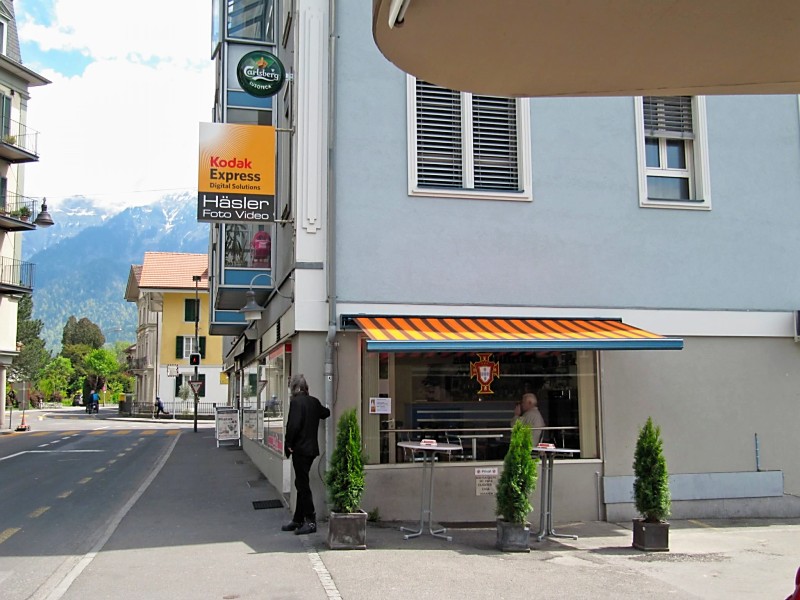 We did stumble upon one down-to-earth place: this moderately-priced cafe. In this German-speaking part of Switzerland, we couldn’t fall back on familiar Romance language skills. It made us feel a bit isolated. So it took me a few minutes to realize that I surprisingly understood what the signs on the cafe wall said. They were in Portuguese! Alex (who luckily was wearing his Mozambique shirt) and I were so excited to use our “obrigada” and “obrigado” again (Portuguese for thank you), and the proprieter was similarly pleased.