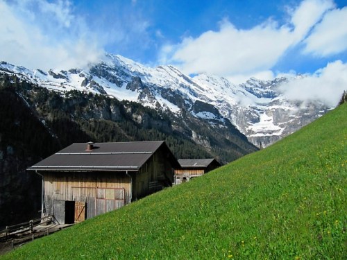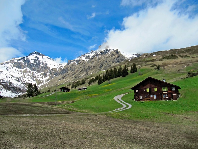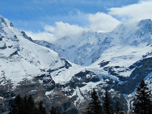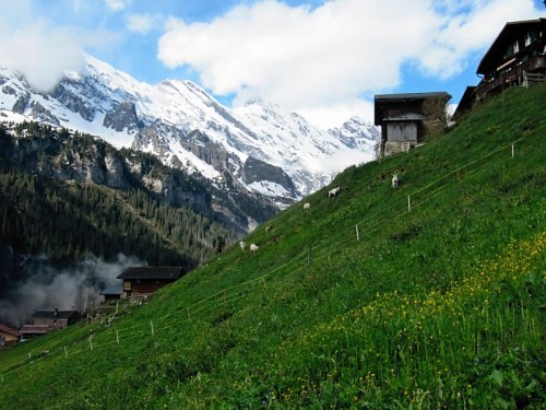 We hiked to the foot of the Schilthorn, which Caroline climbed up on her previous visit. More than a vertical mile up from Gimmelwald!