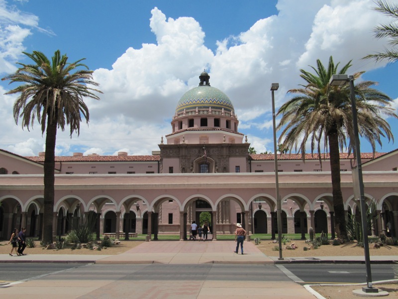 The Pima County Courthouse downtown is another landmark that fits perfectly into its environment, with desert flora and airy corridors.