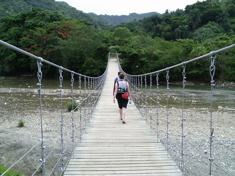 To get back to the waterfalls, you take a 50-peso guagua (minibus) ride through the green countryside to Las Cascadas, the 27 Charcos.