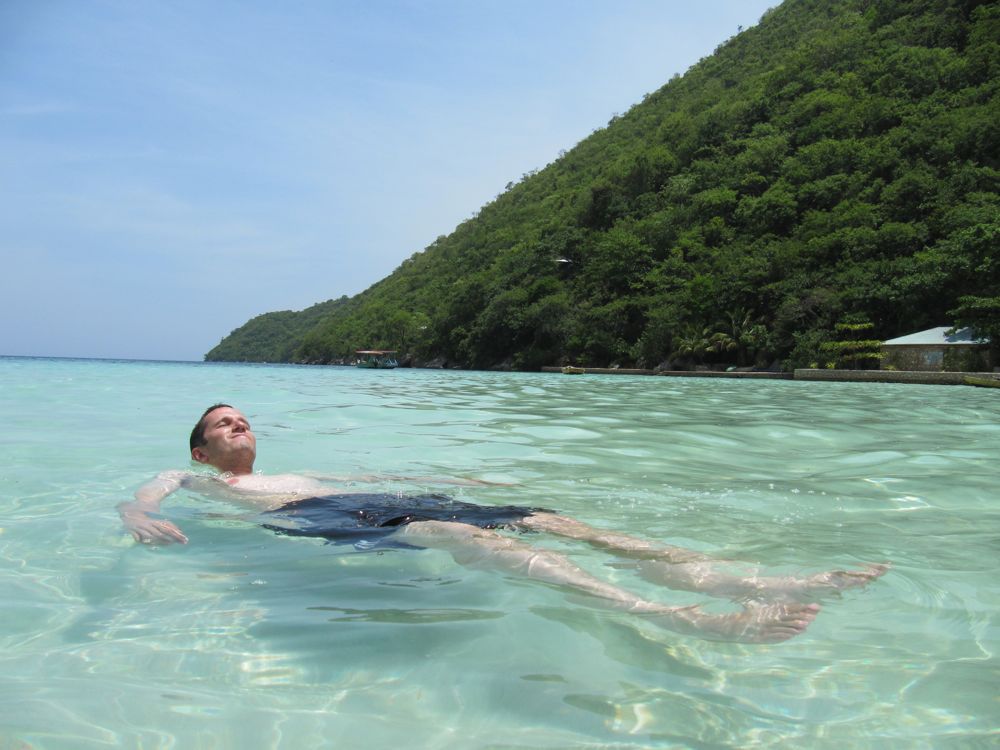 The ocean was deliciously cool on the top and bathwater warm on the bottom, so we could float through as many different temperatures as needed.