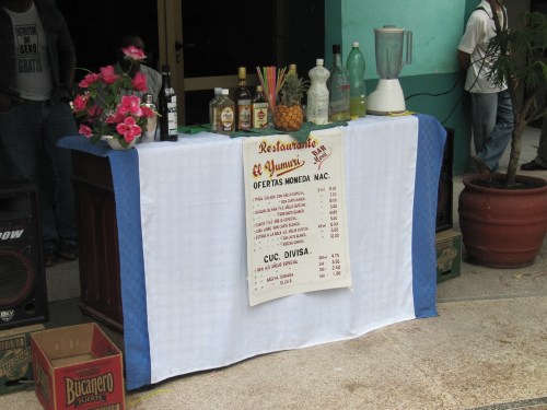 Alcohol in Cuba is outrageously cheap. These drinks, priced in dollars, would seem a bit expensive ($5-$10). But they’re priced in pesos, 25 to the dollar. 20 to 40 US cents for a late-morning cocktail.