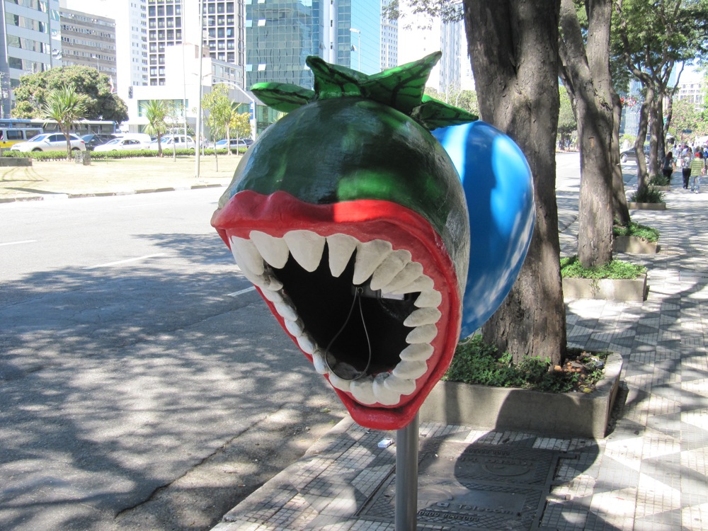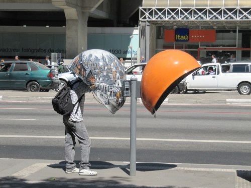 Brazilians have awesome design sensibility. These dome-shaped phone booths are all over the city, and many of them have been decorated in wild, artistic ways.