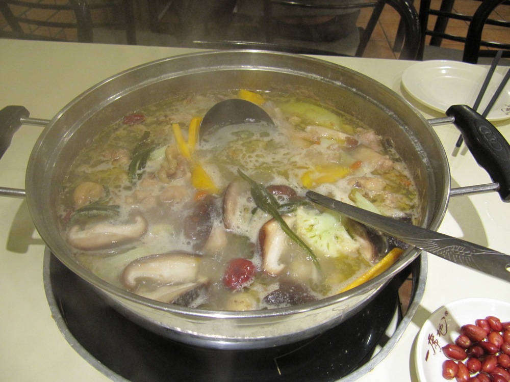 Not so. Basically you are given a bowl of semi-murky water that is brought to a boil, then they bring a raw whole chicken that has been (rather crudely) chopped into bits and dump it in the water. Then you order vegetables and they bring them to you and you cook them yourself in the boiling chicken-mixture.