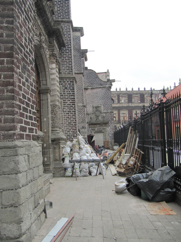 The buildings sinking into the ground can apparently pave the way for the avant garde. Take this old church, two blocks from the Zocalo. See how it’s sagging severely away from the street?