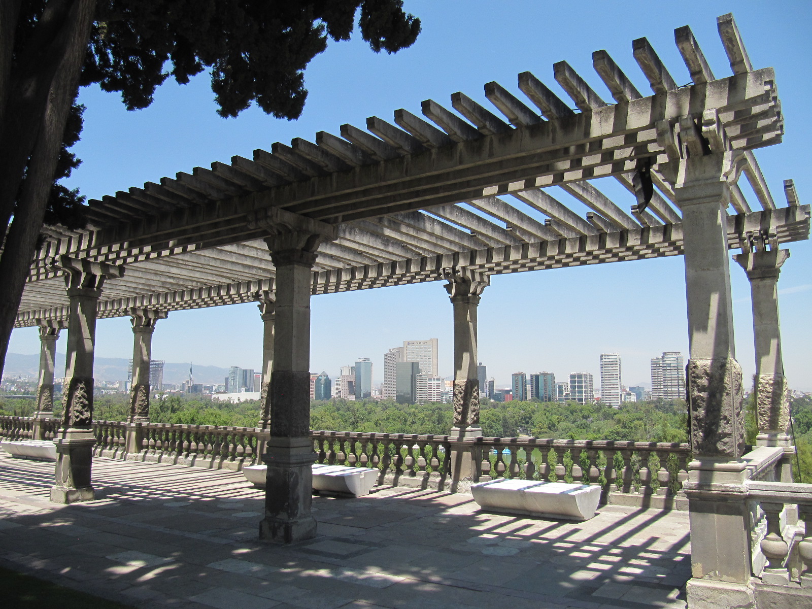 Being set atop one of the highest hills in central Mexico City (although nothing compared to the 17,000′ volcanoes outside of town!), you get some awesome views, too. This is looking northeast towards Polanco, the rich district of central Mexico City.