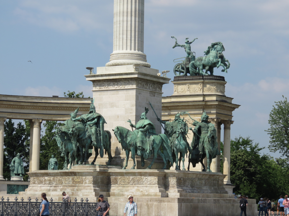 The extensive statues of the Millennium Monument at the entrance of City Park.