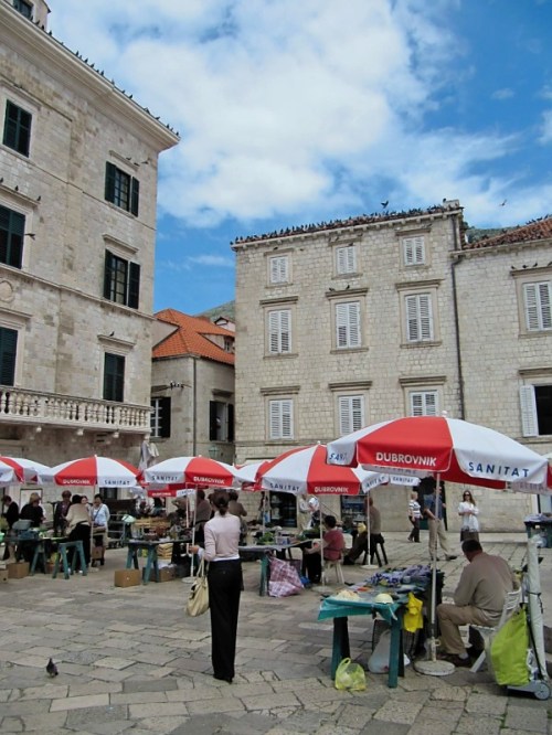 Trebinje’s market, where locals go to pick up herbs, fruits, and vegetables, in stark contrast to the market in Dubrovnik!